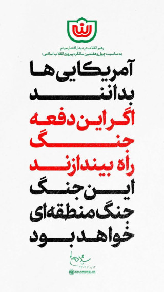 🔺 رهبر انقلاب، صبح امروز در دیدار اقشار مختلف مردم به مناسبت دهه فجر: آمریکاییها بدانند که اگر این دفعه جنگ راه بیندازند، این جنگ، جنگ منطقهای خواهد بود