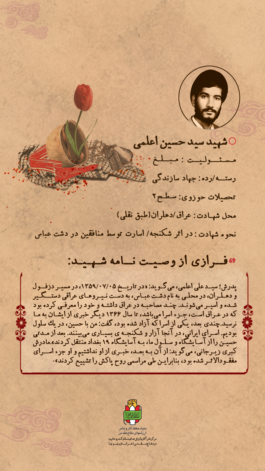 فرازی از وصیت نامه شهید:
