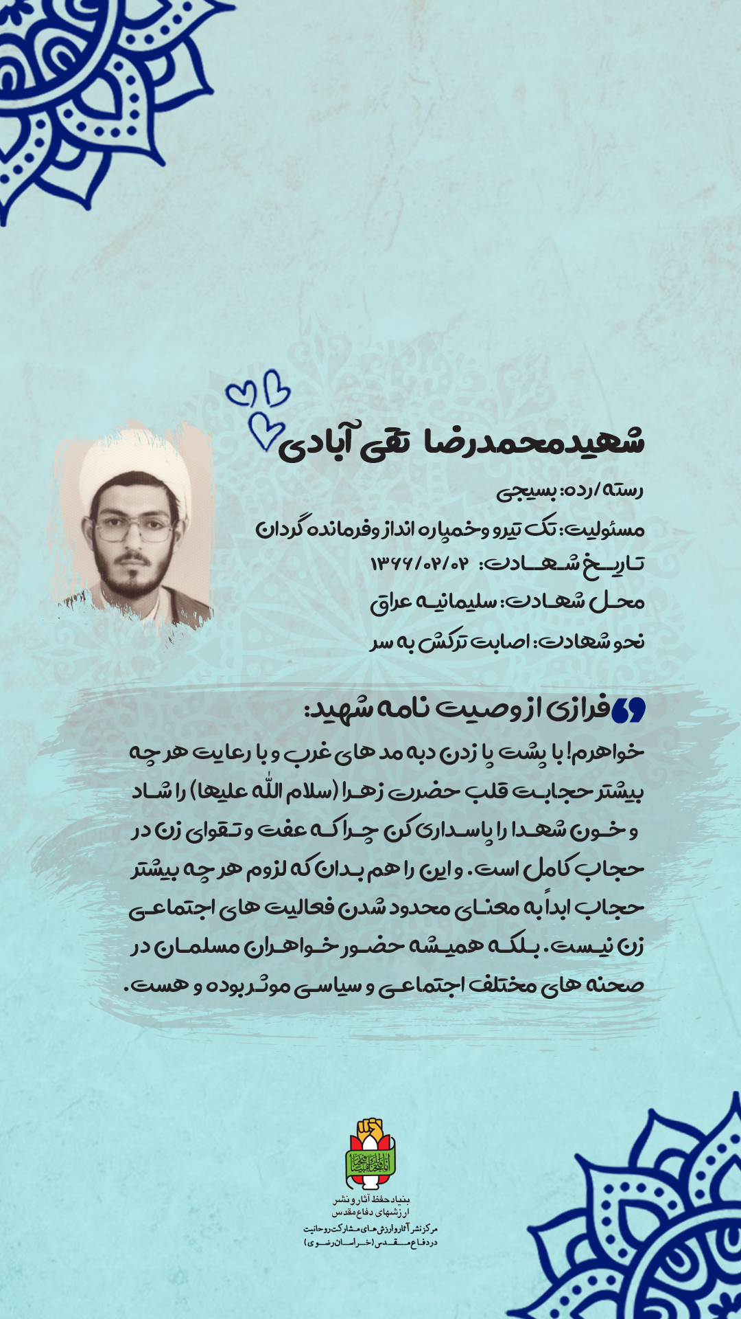 خواهرم! با پشت پا زدن به مدهای غرب و با رعایت هرچه بیشتر حجابت قلب حضرت زهرا(سلام الله علیها) را شاد و خون شهدا را پاسداری کن چرا که عفت وتقوای زن در حجاب کامل است. و این را هم بدان که لزوم هرچه بیشتر حجاب ابدا" به معنای محدود شدن فعالیت های اجتماعی زن نیست. بلکه همیشه حضور خواهران مسلمان در صحنه های مختلف اجتماعی و سیاسی مؤثر بوده و هست.
