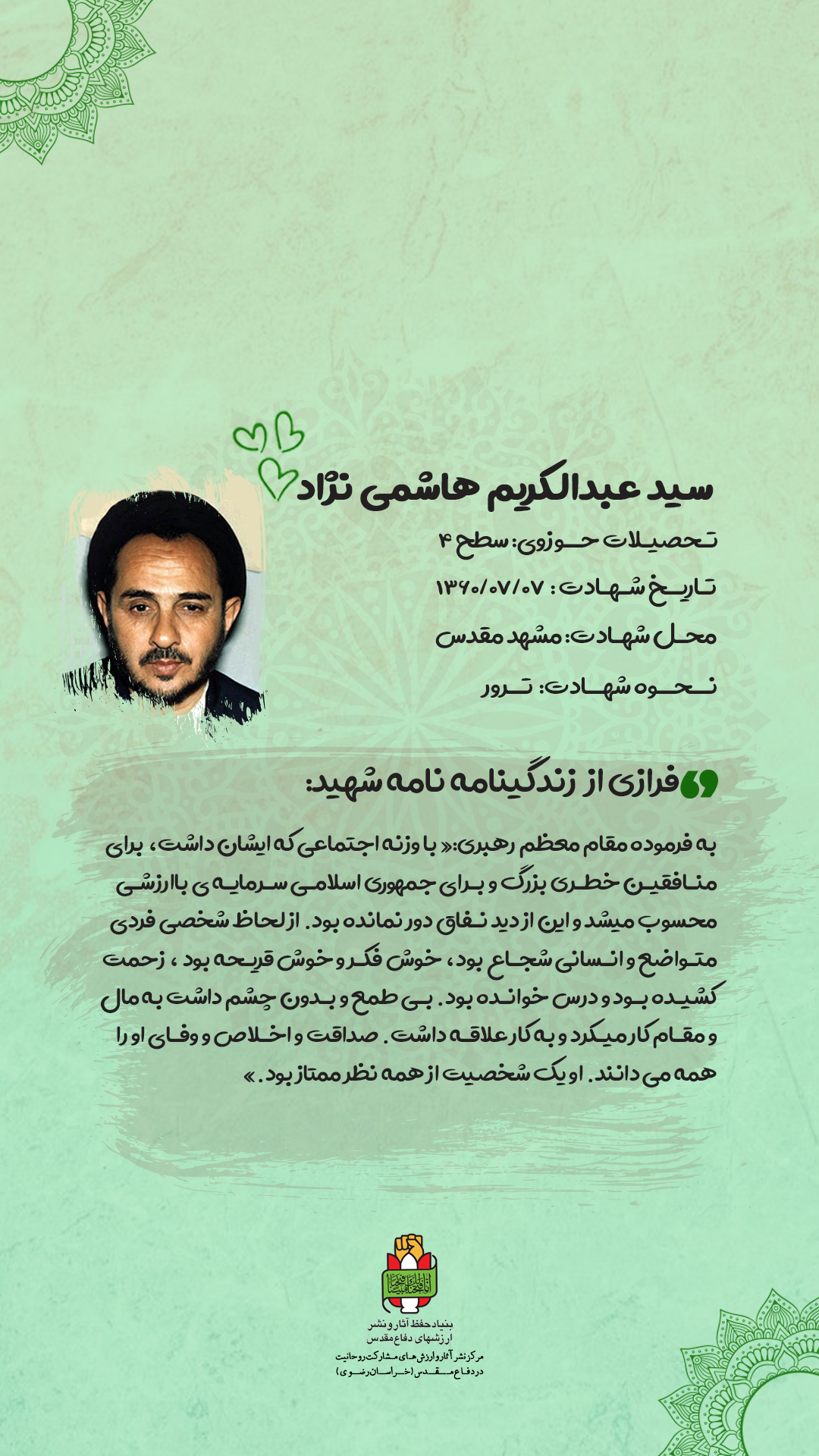 روحانی شهید سید عبدالکریم هاشمی نژاد